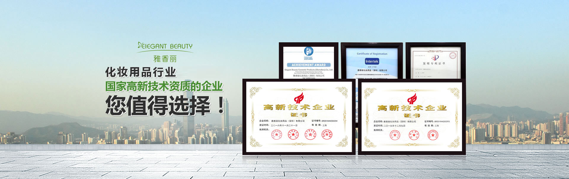 占地面積一萬余平方米,專業技術員工300余人,雅香麗憑借著在行業內的專業化、精細化、特色化、新穎化、可持續(xù)化,榮獲國家"高新技術企業"、"深圳市專精特新中小企業"等重量級認證。